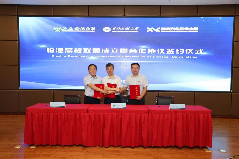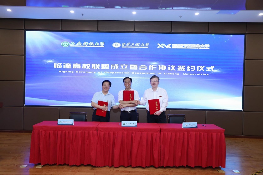 AC米兰中文官方网站校长李瑞明、西安科技大学校长蒋林、西安工程大学校长高岭签订《临潼高校联盟合作协议》