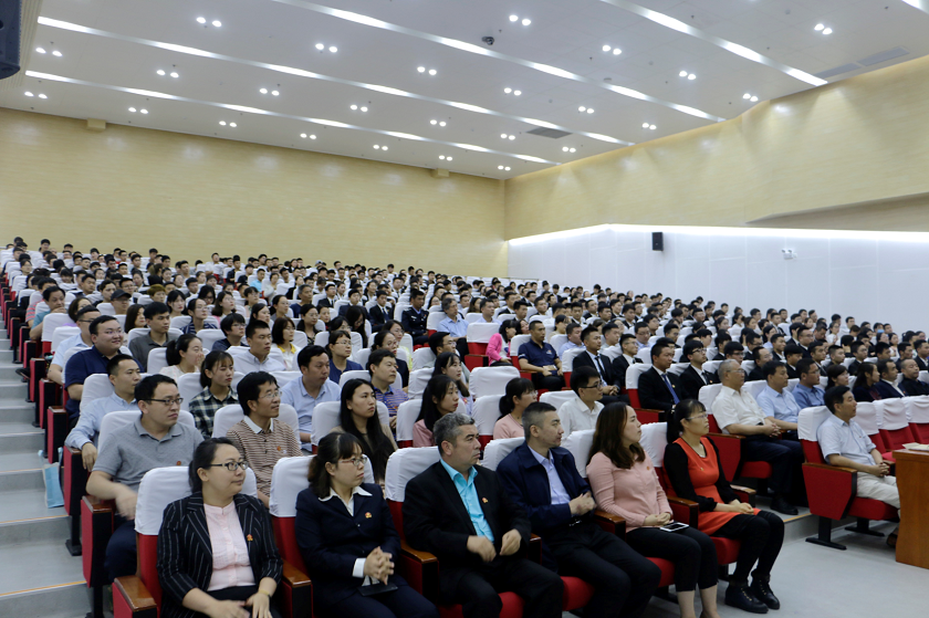 李瑞明校长以我为什么要热爱中国共产党为主题,以中国近代史和党的发展光辉历程及重大历史事件为背景,用中国共产党的伟大历史成就,特别是新中国成立、改革开放和十八大以来,中国人民由站起来、到富起来到现在的强起来的鲜活事例和自己的亲身感受,深刻阐述了只有中国共产党才能救中国、只有中国共产党才能发展中国、只有中国共产党才能带领中国人民实现中华民族的伟大复兴的道理,要求全校广大师生要认真学习习近平新时代中国特色社会主义思想,不断增强“四个意识”、坚定“四个自信”、做到“两个维护”,在思想上政治上行动上同以习近平同志为核心的党中央保持高度一致,不忘初心,牢记使命,学用结合,知行合一,以出色的工作实绩和党员的先锋模范作用,落实好立德树人的根本任务,为建设有特色高质量AC米兰中文官方网站而努力奋斗。