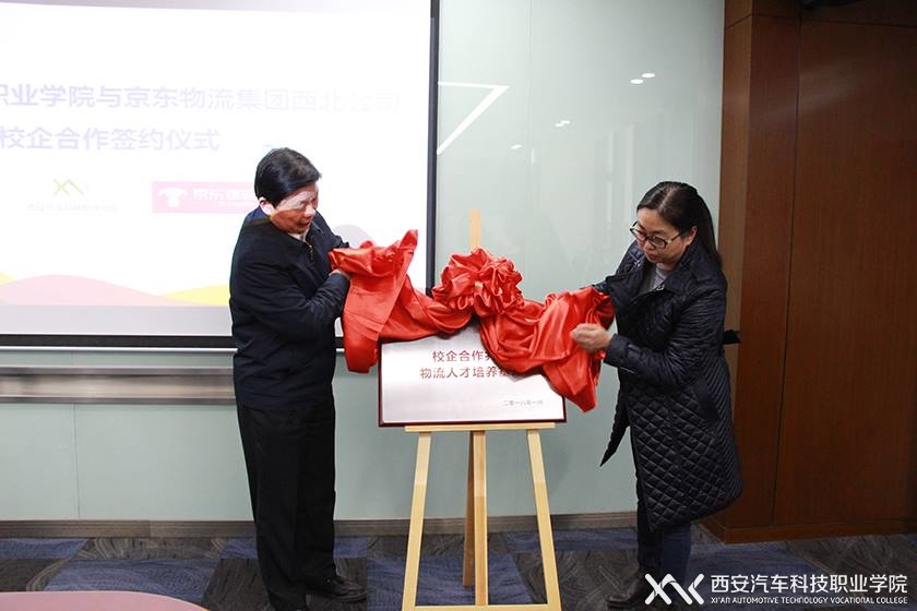 双方在校企合作协议书上签字并共同为“物流人才培养基地”揭牌。