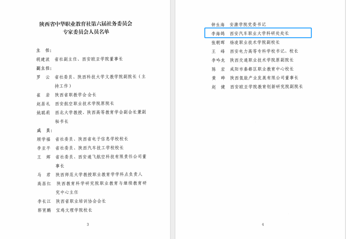 在大会上,宣读了《关于调整专委会设置的决定》,并举行了聘书颁发仪式,AC米兰乔祎被任命为陕西省中华职业教育社第六届社务委员会民办教育委员会成员,李海鸽被任命为陕西省中华职业教育社第六届社务委员会专家委员会成员。