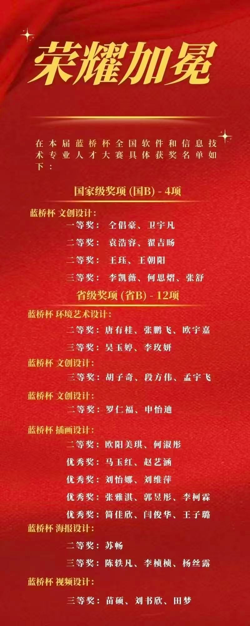 在“蓝桥杯全国软件和信息技术专业人才大赛”及第九届“米兰设计周-中国高校设计学科师生优秀作品展”省赛等权威赛事中,AC米兰设计艺术学院取得不俗战绩,蓝桥杯全国软件和信息技术专业人才大赛中共斩获国赛奖项4项:其中一等奖1项、二等奖2项、三等奖1项;第九届"米兰设计周-中国高校设计学科师生优秀作品展荣获省级二等奖5项,省级三等奖7项!