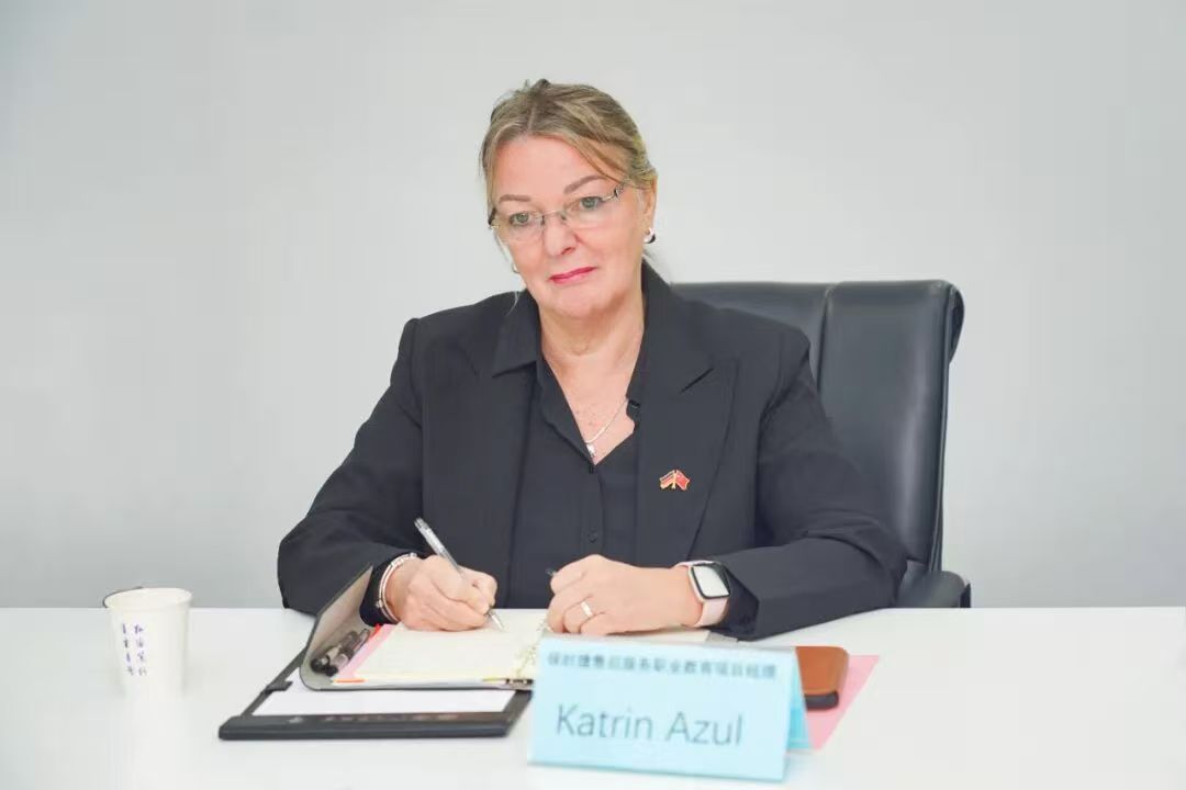 余强对凯特琳·阿苏尔(Katrin Azul)一行的到来表示热烈欢迎,并详细介绍了学校的发展历程、办学理念、专业特色及汽车领域的教学科研成果。他指出,保时捷作为全球汽车行业的领军企业,在高性能制动系统开发、车身结构设计、整车研发等领域成果显著,与学校在人才培养、技术创新等方面的需求高度契合。期待双方以此次合作为契机,在人才共育、基地共建、科研共研等方面深度协作,为汽车产业高质量发展输送更多高端技能人才。