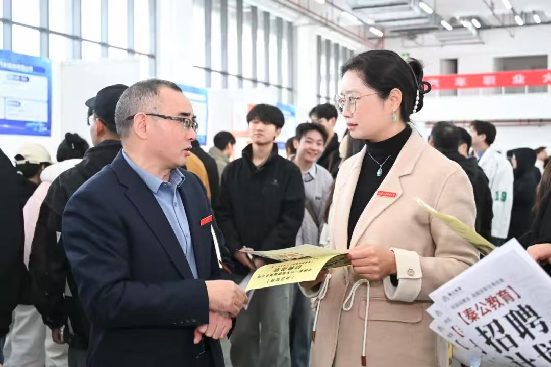 活动现场气氛热烈,学子们手持简历,结合专业兴趣与职业发展意向与招聘负责人进行深入沟通。