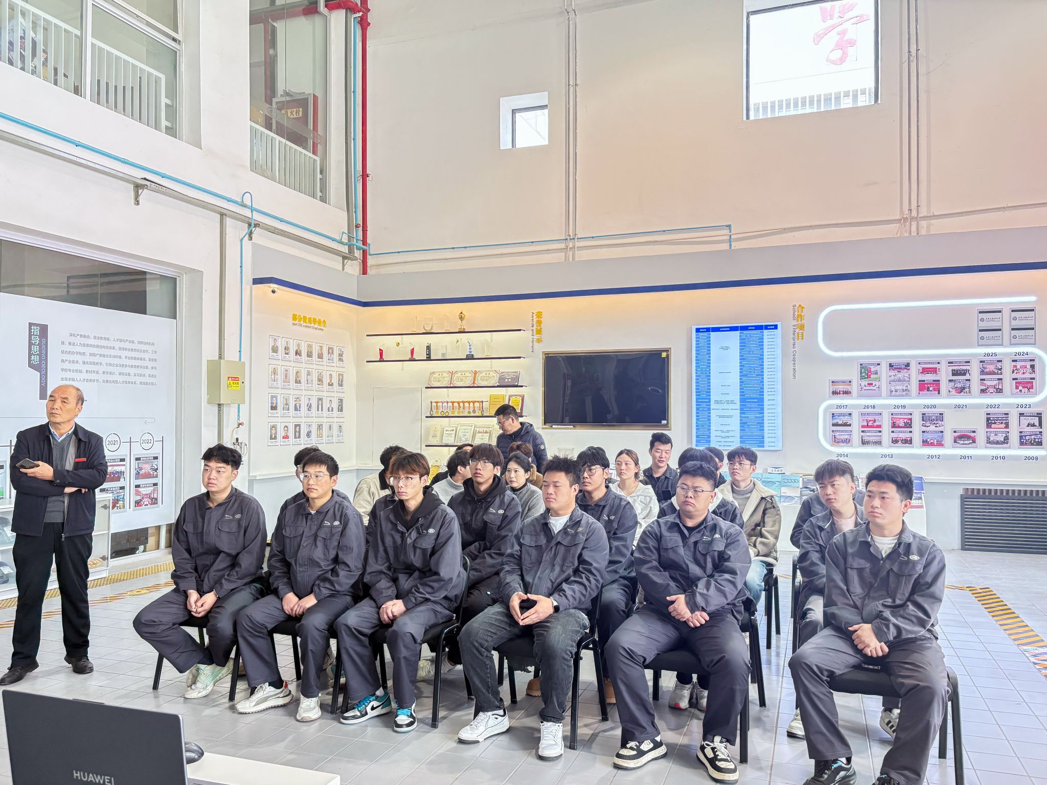 校长助理穆乾坤讲话。他指出,当前汽车产业正步入蓬勃发展的黄金时期,行业前景广阔,充满机遇。同学们要对行业充满信心,深刻认识到当前行业发展带来的人才需求。他强调,机电维修等核心技术领域专业壁垒高、不可替代性强,是构筑个人职业生涯优势的“护城河”。同学们要准确把握当前的就业机会,珍惜校企合作提供的优质平台,在实践中锤炼真本领,努力将个人成长融入国家与行业发展的浪潮,实现人生价值。
