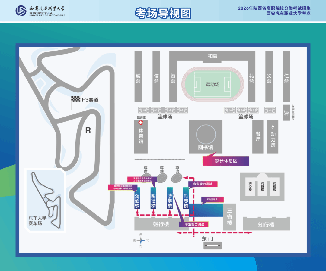 3.测试结束后,听从现场工作人员指挥,从学校东门有序离校。