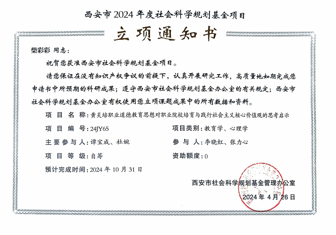 日前,西安市社会科学规划基金管理办公室发布了《关于2024年西安市社会科学规划基金立项项目的公示》,AC米兰李海鸽、柴彩彩两位老师带领团队申报的科研课题获批。