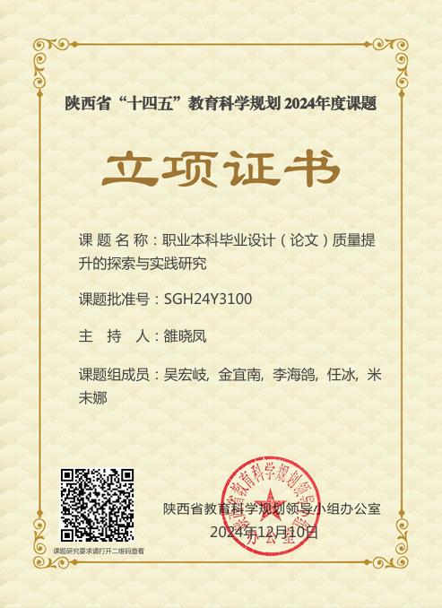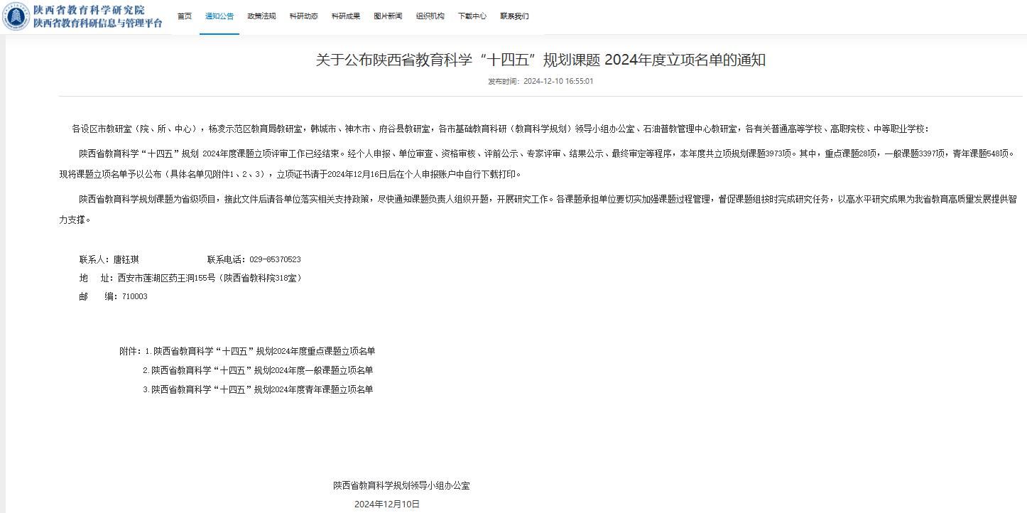 12月10日,陕西省教育科学规划领导小组办公室发布了《关于公布陕西省教育科学“十四五”规划课题2024年度立项的通知》,AC米兰科研处遴选推荐申报的1项课题立项一般课题。