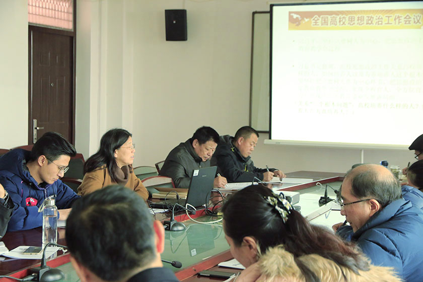 会议学习了习近平总书记在全国高校思想政治工作会议上的讲话内容,全面贯彻立德树人,把思想政治工作贯穿在教育教学全过程的重要讲话精神,实现全程育人、全方位育人,努力开创我国高等教育事业发展新局面。会议主要围绕“高校如何做好思想政治工作”、“高校教师如何做”以及“如何加强党对学院的领导”等三方面内容进行学习。