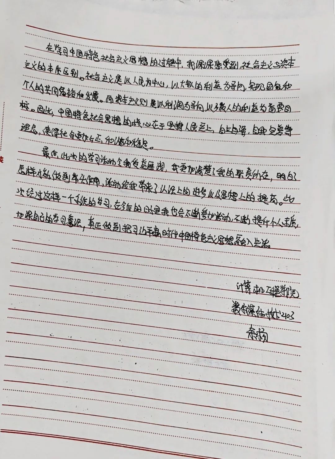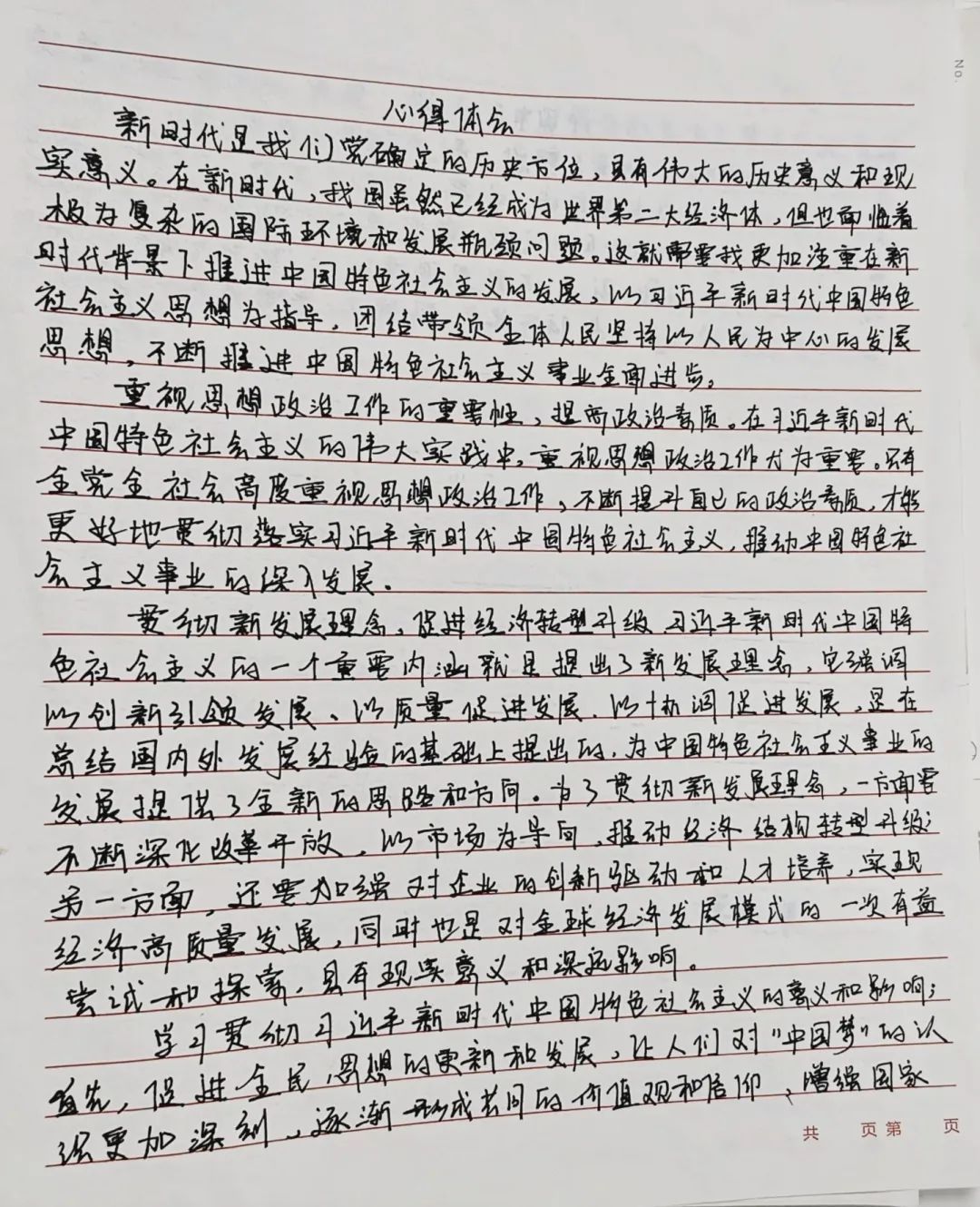 读书班后学员对主题教育精神进行了总结,并写下了心得体会