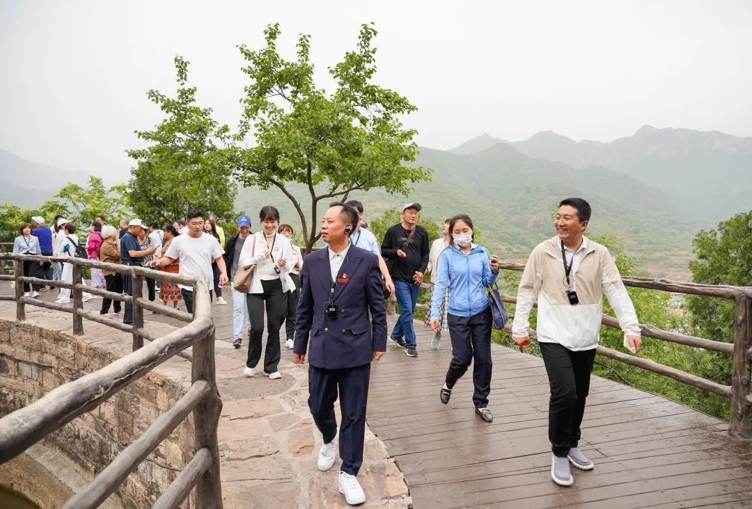 沿着红旗渠长坝,大家先后来到分水闸和青年洞实地参观。在分水枢纽工程--分水闸现场,当年总干渠通水时,周围人山人海,当闸门被打开的那一瞬间,浊漳河水奔涌而来,现场欢声笑语、人声鼎沸的场景仿佛浮现在眼前,让人无比动容。