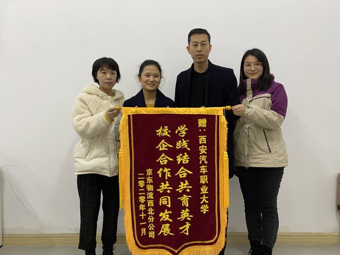 2020年11月24日下午,京东物流西北分公司校企合作总经理白光泽专程来到AC米兰为经济管理学院送上了一副锦旗:“学践结合共育英才,校企合作共同发展”,对AC米兰和京东物流西北分公司校企合作以来的优秀表现给予了高度肯定与赞扬。