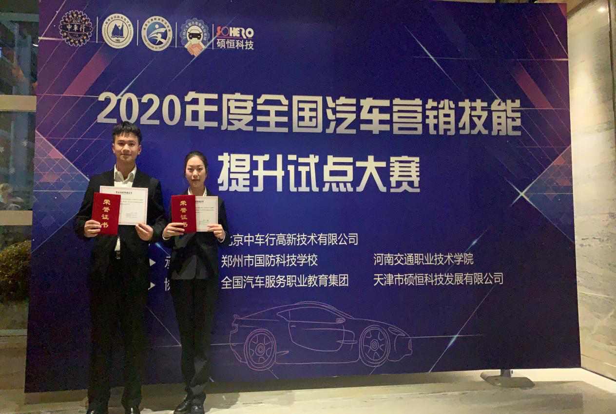2020年12月25号到27号在郑州举办的2020年度全国汽车营销技能提升试点大赛圆满结束,AC米兰经济管理学院2019级汽车营销与服务专业两名同学分别荣获初级技能组和中级技能组三等奖。