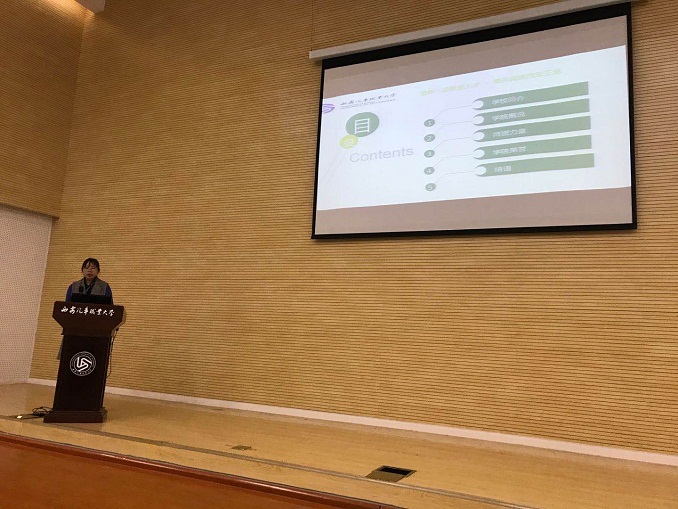 接下来许亚平副院长为同学们详细讲解理学院概况,许老师分别从学校简介、学院情况、师资力量和学院所获荣誉四方面进行了讲解,她祝愿同学们能够放飞梦想,扬帆起航,以梦为马,不负韶华,并希望同学们今日能以学院为荣,明天学院以他们为荣。
