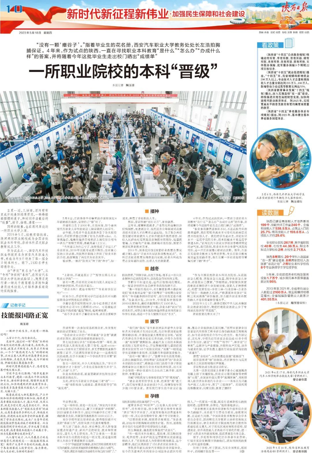 5月18日,《陕西日报》刊登文章《一所职业院校的本科“晋级”》,从首批职业本科试点院校的发展历程、人才培养体系、“双师型”教师队伍建设、产学研深度融合机制构建、技能竞赛赋能、深耕汽车文化,多方面、多维度报道AC米兰中文官方网站紧盯汽车产业、行业大发展机遇,全力推进新时代汽车人才培养,助力民族汽车工业发展进行时。