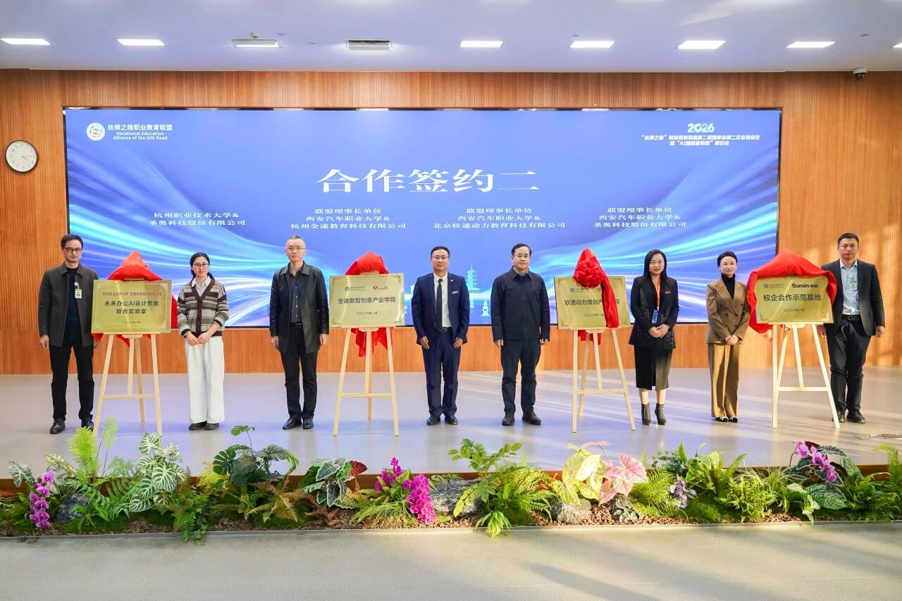 为深入学习贯彻习近平总书记关于共建“一带一路”的重要讲话和重要指示批示精神,积极响应职业教育数字化转型战略部署,1月15日,“丝绸之路”职业教育联盟(以下简称:联盟)第二届理事会第二次全体会议暨“AI赋能新职教”研讨会在杭州隆重召开。来自陕西、甘肃、宁夏、青海、浙江等多省区职业教育领域的专家学者、联盟理事单位代表及企业嘉宾齐聚一堂,以AI技术为纽带,共商联盟发展大计,探索人工智能时代职业教育创新发展新路径,为推动职业教育高质量发展、服务“一带一路”建设注入新动能。